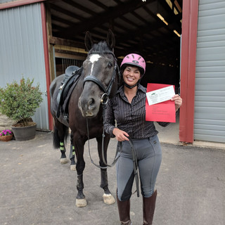 Prince Charles MSE (Master of the Stink Eye) was a super star in every way! This was only his second show, and he cleaned up 4 blue ribbons at first level!! And thanks to Charlie, I won the open high point raffle. Thank you Gallops Saddlery! He was a little anxious in his stall at first, and besides one test in the indoor with him screaming the whole test (still a 70%!), he settled into the show scene nicely. This horse has such a history, and he and Jessica have had many ups and downs ( including but not limited to saddle fit issues, trailering issues, Jessica undergoing/rehabbing from hip surgery ). I am so proud of Jessica for growing tremendously as a rider and a horsewoman - all because Charlie can be MSE from time to time. She never gave up and because of that Charlie is becoming a solid citizen - being quite the show horse is bonus. However that icing on the cake for the whole weekend was after all the success Charlie had in the ring, he topped it off by loading and trailering home like a pro! Those of you who know his trailer journey have an idea of what this means! It was an indescribable moment for me seeing Jessica walk out of that trailer after loading her boy, a beaming, proud mama!!